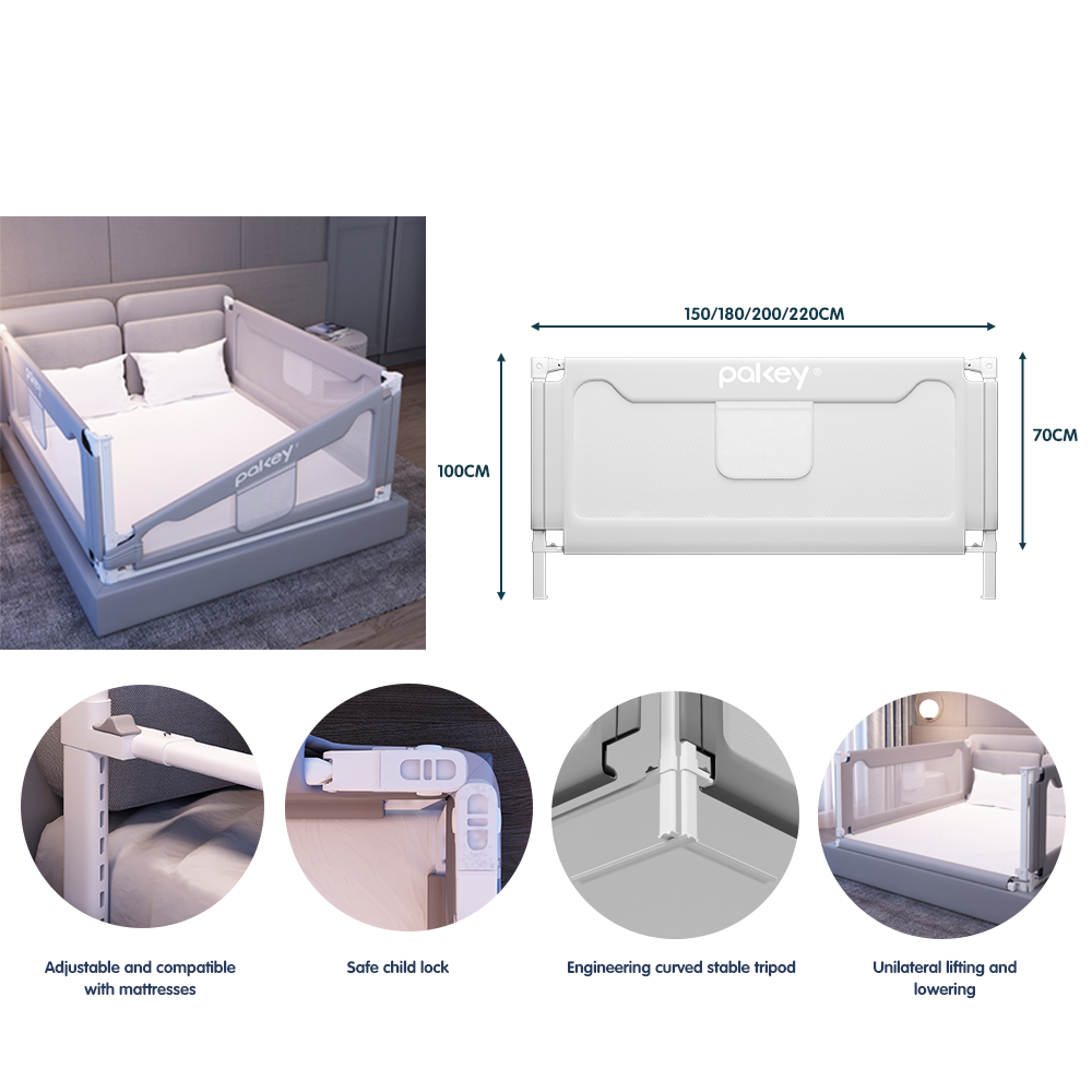 Регулируемая длина для универсальной совместимости с кроватями: гибкая телескопическая конструкция легко подходит для односпальных и двуспальных кроватей, а также для матрасов увеличенной ширины, удовлетворяя различные потребности семьи.