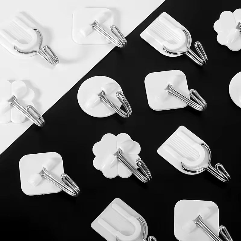 Без сверления, без сомнений! Пластиковые клейкие крючки идеально подходят для дома, кухни, ванной комнаты, шкафа, гостевой комнаты, хранения в автомобиле, хранения наушников, развешивания одежды и других целей.