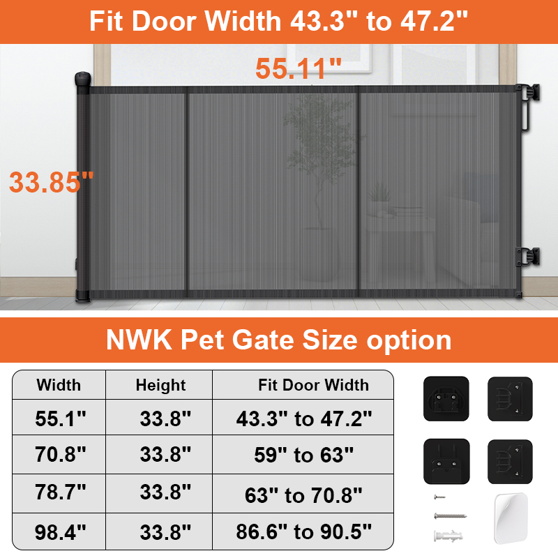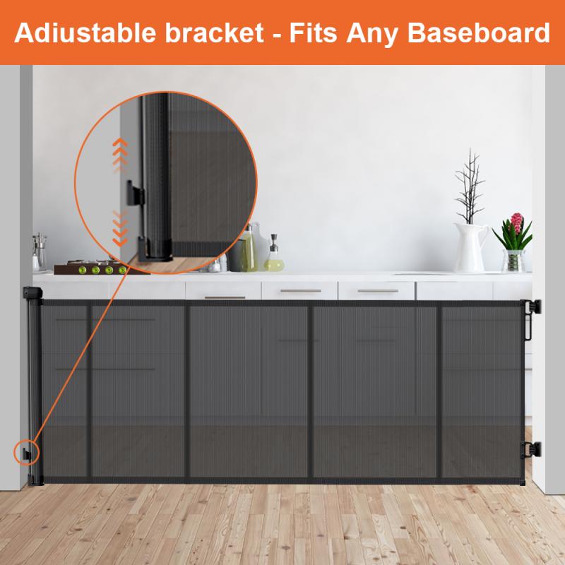 Простота установки/снятия: нижний подвижный кронштейн специально разработан для плинтусов. Когда дверь не используется, снимите её с кронштейна, нажав кнопку снятия. Храните или используйте в другом месте.