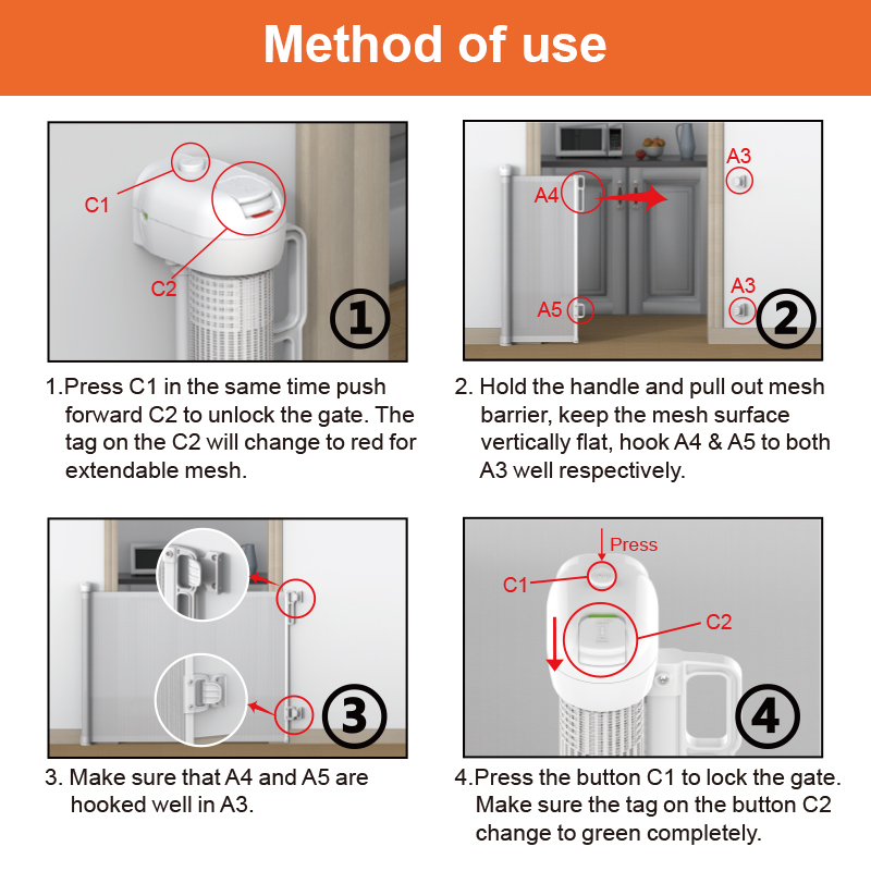 Очень широкие выдвижные сетчатые защитные ворота для детей
