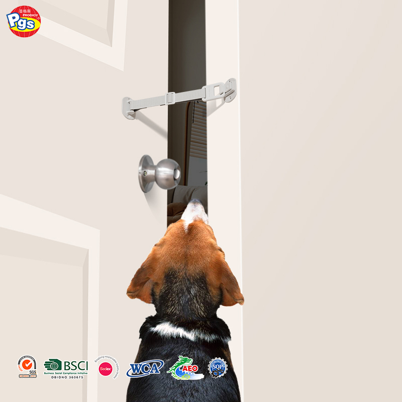Длина ремня замка полностью регулируется и подходит для большинства дверных проемов, обеспечивая плотное и надежное крепление без люфта. Два типа кнопок замка (типы A и B) обеспечивают гибкость в использовании, а усиленный ремень устойчив к натяжению со стороны активных домашних животных.