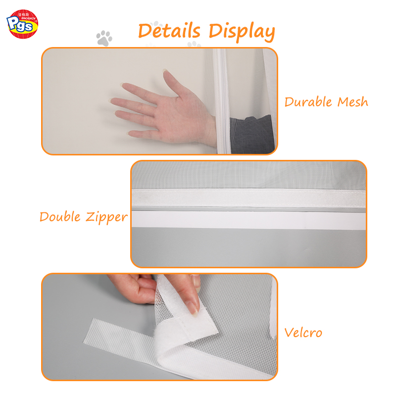 while keeping insects out and pets safely inside. Easy to install with strong Velcro and featuring a secure double-zipper mechanism,