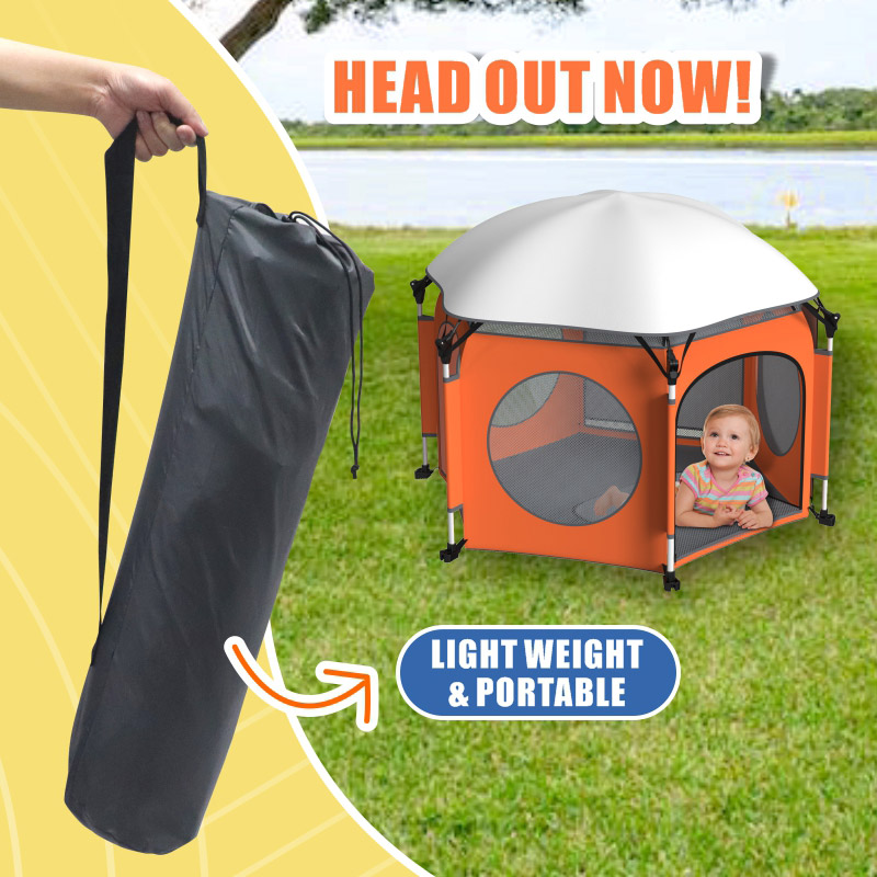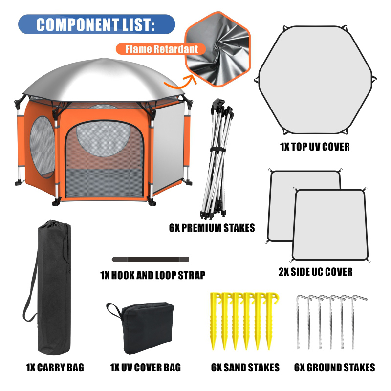 5.Multi-Purpose Design: Spacious interior fits pets and kids (great for outdoor "fun time"); available in 3 colors (Pumpkin, Azure, Charcoal) to match your style. What’s Included 1x Tent body, 1x Top UV cover, 2x Side UV covers, 6x Premium stakes, 6x Sand stakes, 6x Ground stakes, 1x Hook & loop strap, 1x Carry bag, 1x UV cover bag.