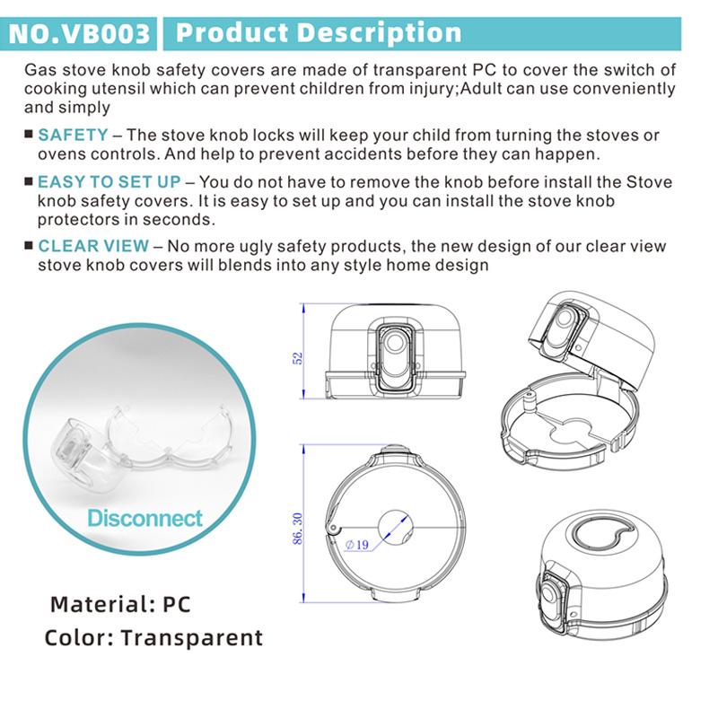 Product OverviewOur Safety Stove Oven Knob Cover is designed to protect your family from accidental stove activation by curious children. Made of high-quality transparent PC material, it provides a clear view of your stove while preventing unauthorized operation, keeping your kitchen safe without compromising on style.
