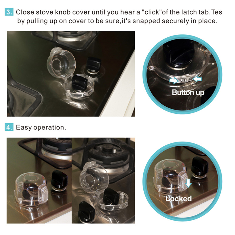 The push-to-open design allows adults to easily access the knob when cooking, while remaining child-resistant. Simply lift and press the button to open, then close and lock it after use.
