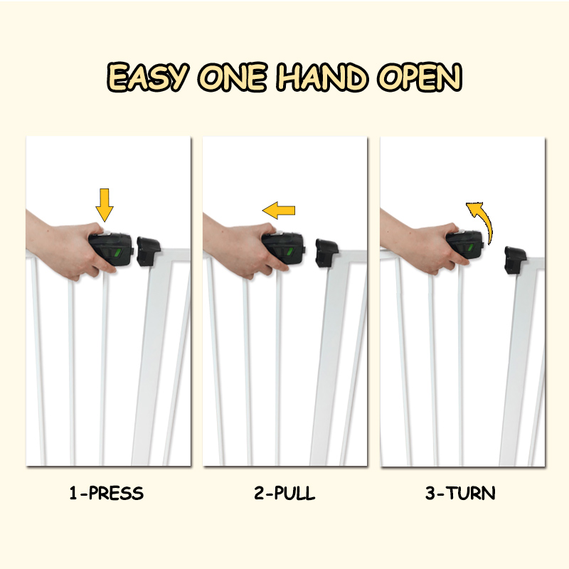 Ворота автоматически закрываются, обеспечивая надежную защиту, а визуальный боковой индикатор давления гарантирует правильное натяжение и безопасную установку каждый раз.