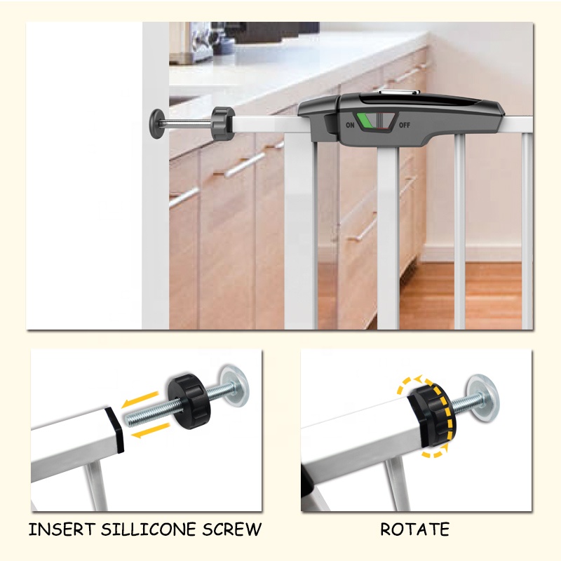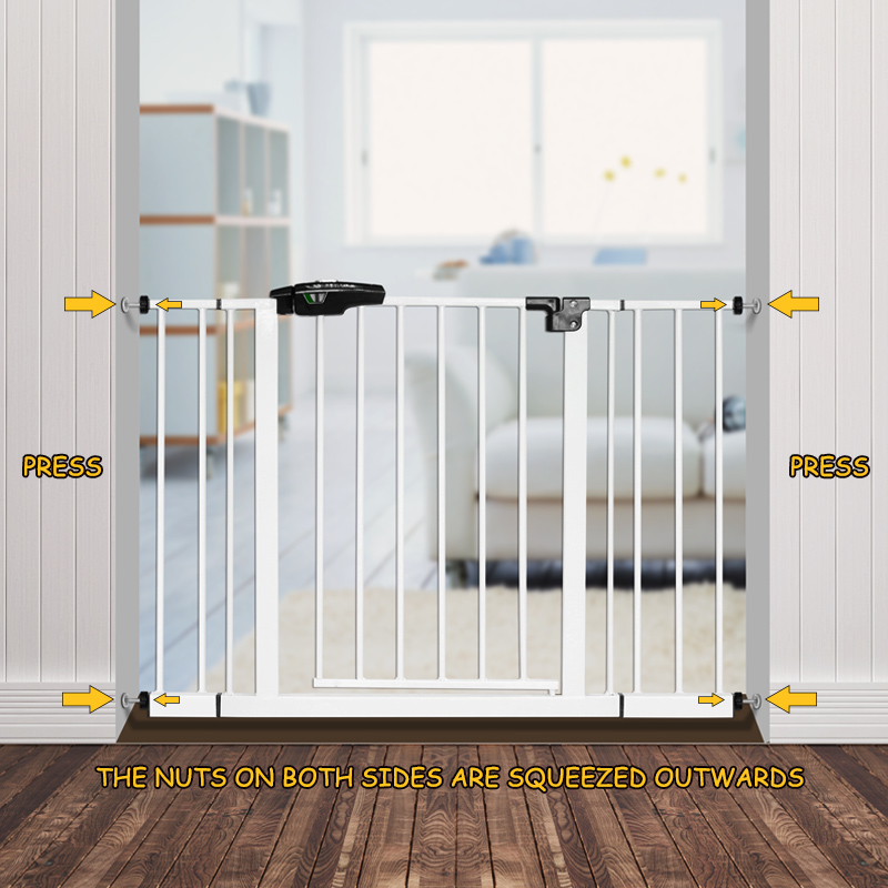 Легко регулируется по ширине от 76 до 81 см, что позволяет использовать его в дверных проемах, на лестницах, кухнях и других местах. Совместим с дополнительными удлинительными комплектами (продаются отдельно) для более широких проемов.
