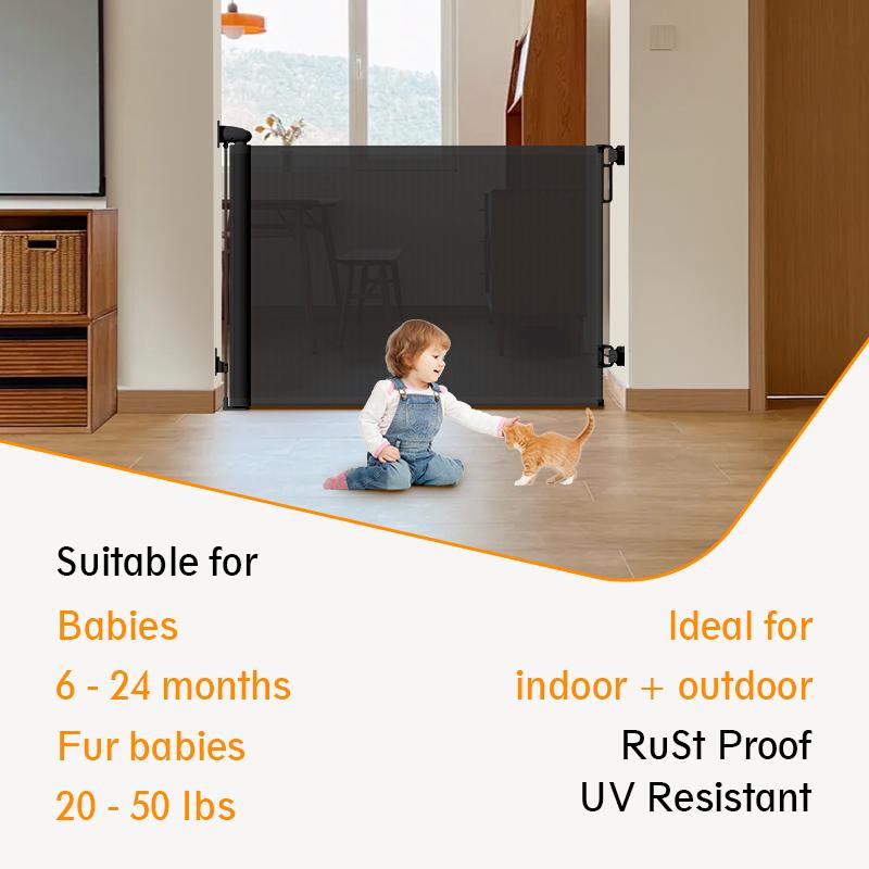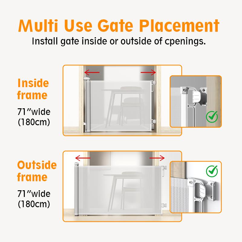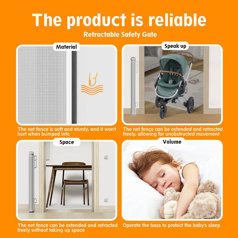 3. Идеально подходит для любого места: выдвижной сетчатый защитный барьер, подходящий для любого входа, лестницы, дверных проемов, нижних частей лестниц, внутренних проемов, дворов, коридоров и различных случаев.