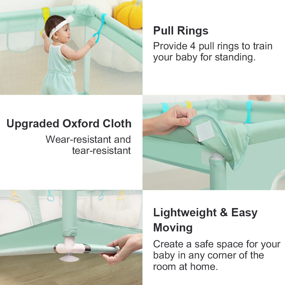 Толстый мягкий пол и игрушечные мячи приобретаются отдельно, что обеспечивает комфорт малышу как во время игр, так и во время сна. Доступны различные размеры и цвета на заказ. Используйте его с навесом Onyx, чтобы защитить малыша от солнца и насекомых (продается отдельно).
